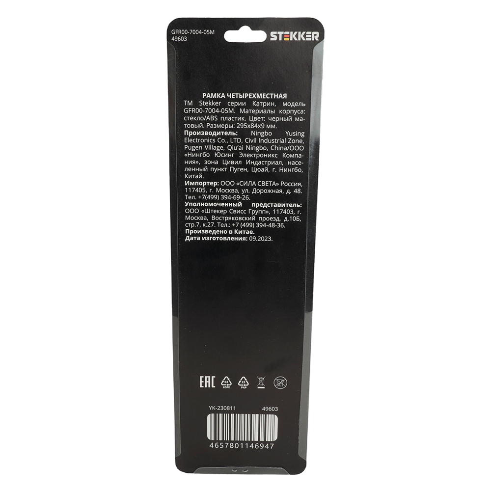 Рамка STEKKER GFR00-7004-05М на гнездо, , . Материал: Стекло/ABS пластик, цвет черный матовый, размер 295*84*9мм. Номинальное напряжение , номинальный ток , диапазон рабочих температур ,