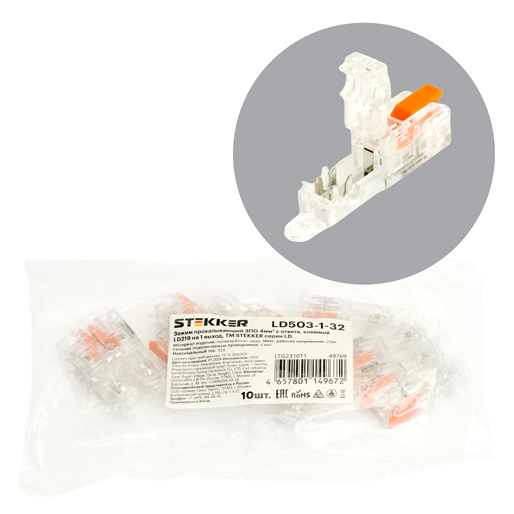 Клемма пружинная STEKKER LD219-421