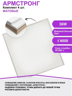 001-36W-4000K Панель светодиодная 600x600x21mm/комплект 4шт