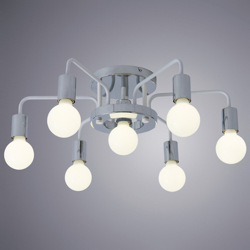 Люстра Arte Lamp A6001PL-7WH серии GELO. Подчеркнет стиль помещения. Размеры 60x60x17 cm. Диаметр 60 cm Параметры пылевлагозащиты IP — 20. Форма изогнутая. Материал/цвет арматуры металл/белый. Использует 7 ламп с цоколем E27. Площадь освещения охватывает 14 m². Идеально подходит для спальни. Страна происхождения бренда — Италия. Вес с упаковкой 1.8 kg