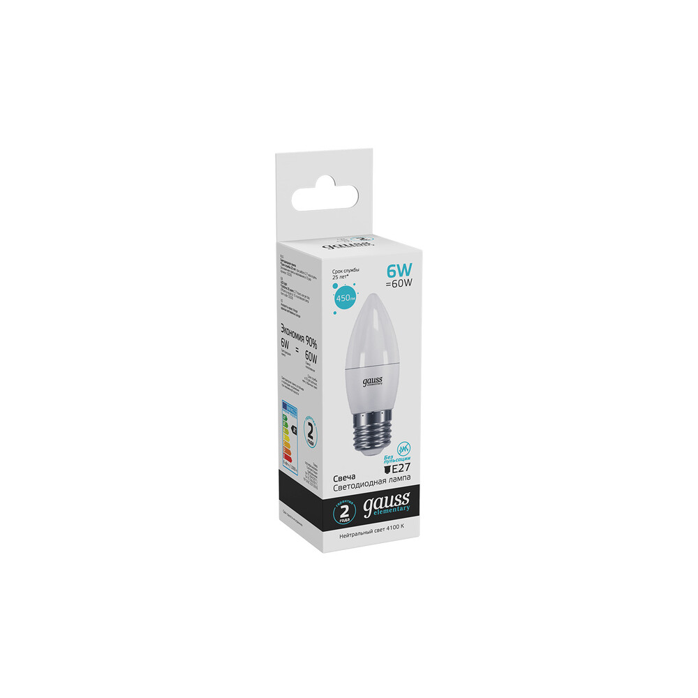 Светодиодная лампа Gauss Свеча 6W 450Lm 4100K E27 33226